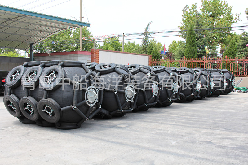充氣橡膠護(hù)舷(靠球)是一種壓縮空氣的海洋防碰撞產(chǎn)品。主要利用壓縮空氣為緩沖介質(zhì),吸收船舶沖擊能量,使船舶??繒r(shí)具有更柔性和更軟性,以達(dá)到防碰防撞防避的效果。橫濱型靠球?qū)儆谧o(hù)套型靠球的一種,通常采用飛機(jī)輪胎或者工程輪胎來(lái)包裹球體,兩端配有肩帶,從而廣泛的用于船與船之間的轉(zhuǎn)移作業(yè)以及船舶靠泊作業(yè)等。尺寸為:D0.5m x L1.0m ~ D3.3m x L6.5m。充氣護(hù)舷(靠球)嚴(yán)格按照ISO17357-2002 和GB/T 21482-2002國(guó)際質(zhì)量標(biāo)準(zhǔn)生產(chǎn),其產(chǎn)品遠(yuǎn)銷(xiāo)世界各地。